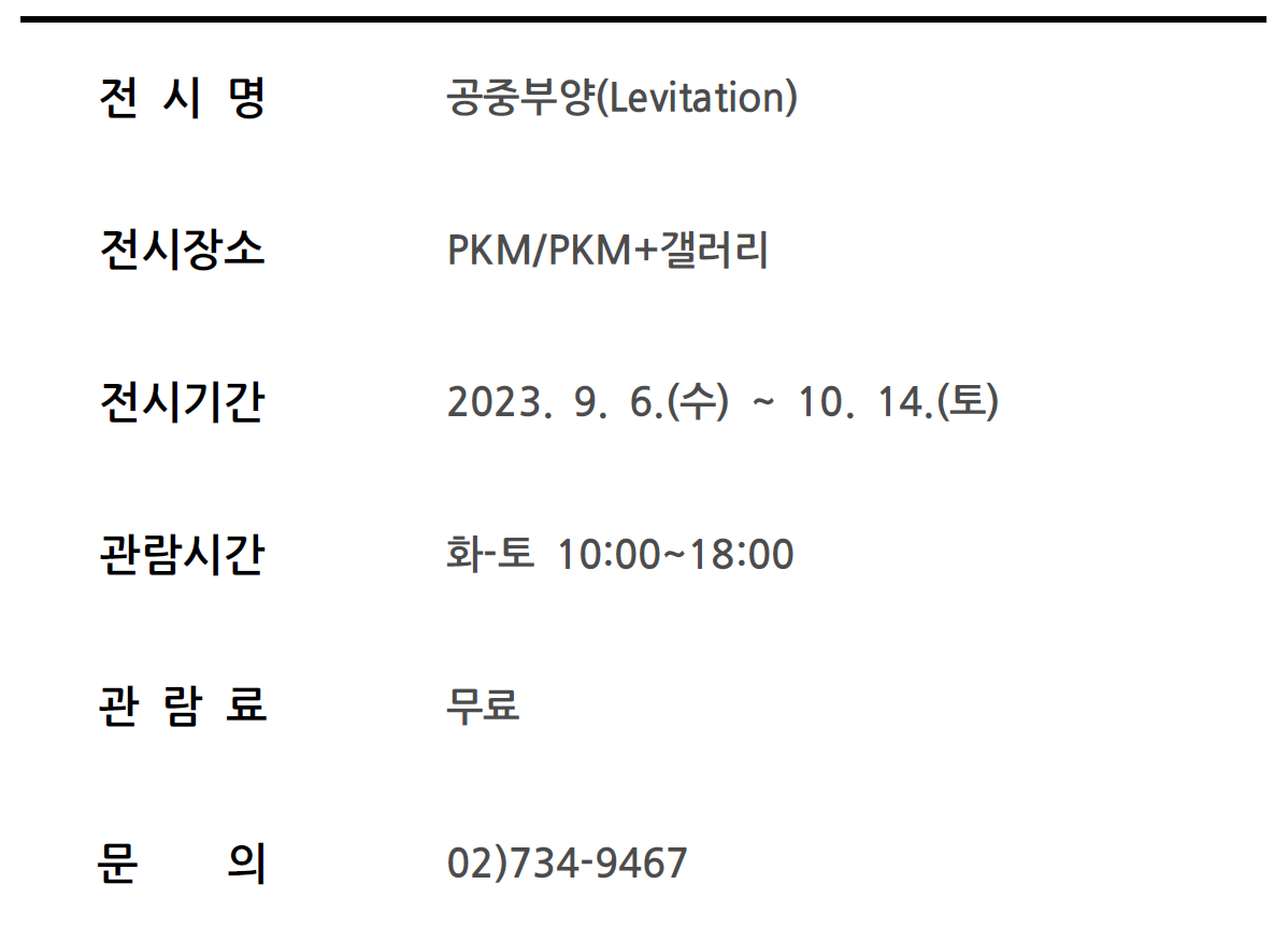 PKM 갤러리는 9월 6일부터 10월 14일까지 2024년 제60회 베니스 비엔날레 한국관 단독 작가로 선정된 구정아 작가의 개인전 «공중부양»을 개최한다. 구정아는 오감을 사로잡는 섬세한 작업으로 국제무대에서 두각을 드러내 왔다. 국내 네 번째 개인전인 이번 전시에서 그는 드로잉, 프린트, 포스터, 책 등 작품 세계 전반의 흐름을 보여주는 다양한 매체의 작업과 더불어, 새로운 ‹Seven Stars› 대형 페인팅, 부유하는 마그넷 조각 등 작품 20여 점을 갤러리 전관에 걸쳐 선보인다.