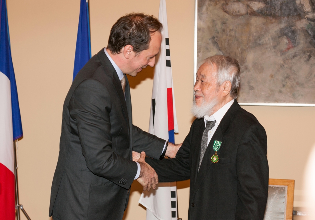 이어 1990년대부터는 <회귀>를 주제로 문자와 물방울을 접목한 작업을 주로 했으며, 돌과 유리, 모래, 무쇠, 나무, 물 등을 재료로 물방울 회화를 설치미술로 확장한다. 그리고, 프랑스와 한국을 오가며 활동한 그는 양국의 문화교류 저변 확대에 기여한 바를 인정받아 1996년에 프랑스 문화예술공로훈장 슈발리에를 받는다.