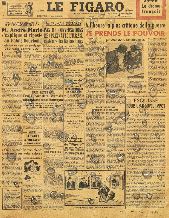 프랑스에서 활동하며 재료 연구를 하던 중 우연히 다락방에서 발견한 프랑스 일간지 <피가로(Le Figaro)> 1면에 수채 물감으로 물방울을 그려넣으면서 비로소 문자와 물방울의 조합이 시작된다. 이 것이 바로 1975년작 <피가로지(Le Figaro, 1975)>이다. 작품을 통해 캔버스에 환영으로만 존재하던 물방울을 현실 세계로 옮겨왔다는 찬사를 받았으며, 이 조합은 나중에 천자문을 배경으로 한 <회귀>시리즈와도 맥락을 같이한다.